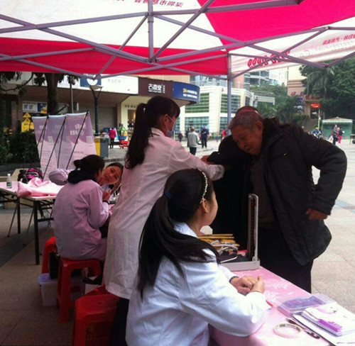 本次义诊服务分为三大项目:血压测量、妇科问诊、美容咨询。血压测量受到很多中老年人的喜欢,纷纷相约来到服务点,进行一些血压测量以及最近身体状况的咨询。中途,一位中龄老人搀扶着一位高龄老人前来咨询,同仁医院的医生为其测量血压后,并细心的帮助老人把衣服穿好。简单的动作,却温暖了在场所有人的心。