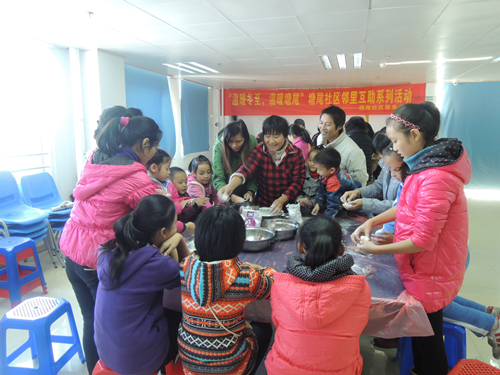 2014年12月21日是冬至来临的前一天,塘尾社区服务中心以此为契机,以促进邻里关系、互相帮助为目标,开展了“温暖冬至,温暖塘尾”社区邻里互助活动,为塘尾社区居民带来首个暖冬节日:冬至。
