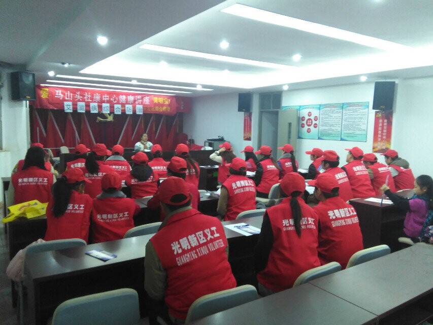 马山头居住的居民,大部分是来自全国各地的打工青年,他们的平均知识水平都对比较低,对艾滋病知识更是一点也不知,所以请来马山头社康中心的站长容先生,来给义工讲艾滋病的综合防治知识,然后再让参加的义工对艾滋病的综合防治进行宣传
