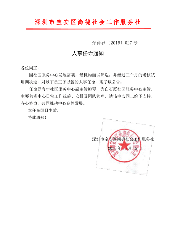 人事任命通知