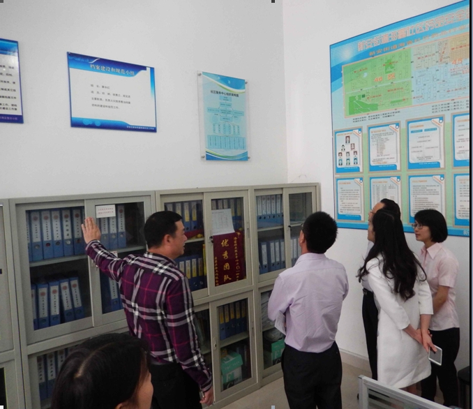 图一 民政局领导一行参观社区服务中心办公室