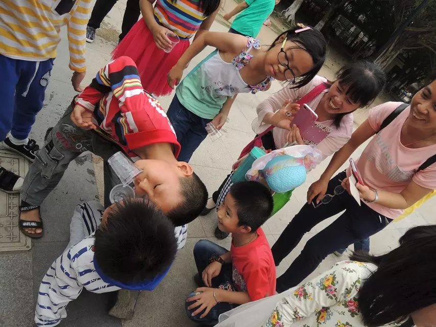 杯子传水紧张进行中,大人小孩都围过来观看