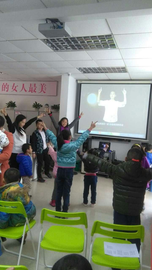 2.孩子们在跟着学习手语