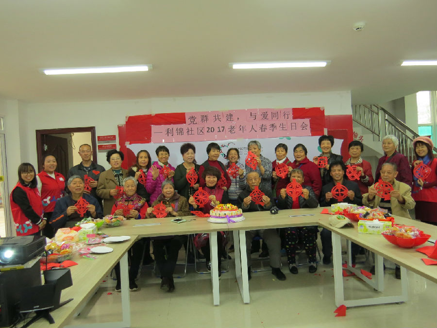2017年3月26日下午2点半至4点,利锦社区2017年老年人春季生日会顺利进行。本次生日会,社区老年人协会会长全程参与,开场就送上了最诚挚的祝福。寿星们自己动手剪了喜庆的灯笼,人人参与,齐享欢乐,随后工作人员播放了在座寿星家属们的视频祝福,部分祝福更是远在千里之外的儿女们的最暖心声,寿星们看的热泪盈眶。分享生日蛋糕,合影留念,领取生日礼物,轻松而温馨的流程之后,寿星们幸福地踏上了回家的路。