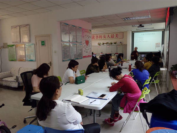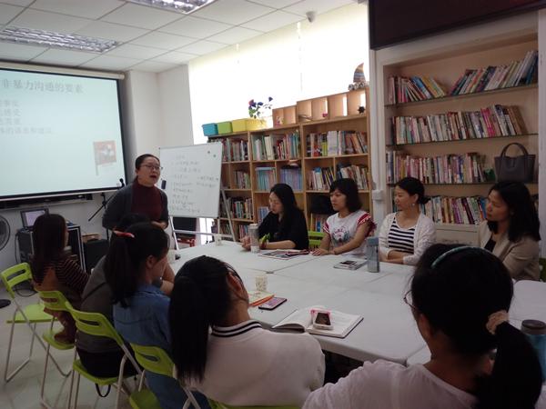 此次活动吸引了21名社区女性参加。活动开始后,邵老师先简单说明此次课程内容是通过分享《非暴力沟通》中的精髓,学习书中的沟通技巧。接着,邵老师例举日常中经常遇到的沟通事件与大家进行讨论,同时融合沟通的学习要点讲解。主要提倡大家学会陈述客观事实、学会体会和表达感受、学会倾听语言背后的爱与关心、学会表达自己的需要及学会提出具体的请求与需要。其中练习把“不得不做……”句式改为“因为……我选择做……”句式的环节中,让在场的女性体会到语言的改变,不仅仅只是改变了语句,其内在的情绪也缓和了不少,寓意也由被动的去做一件事而变成是自己选择的结果。最后邵老师提醒大家接纳自己的情绪,接纳自己的不完美,在宽恕自己不完美的同时宽恕对方的不完美,倾听对方的需要与感受,用爱架起沟通的桥梁。