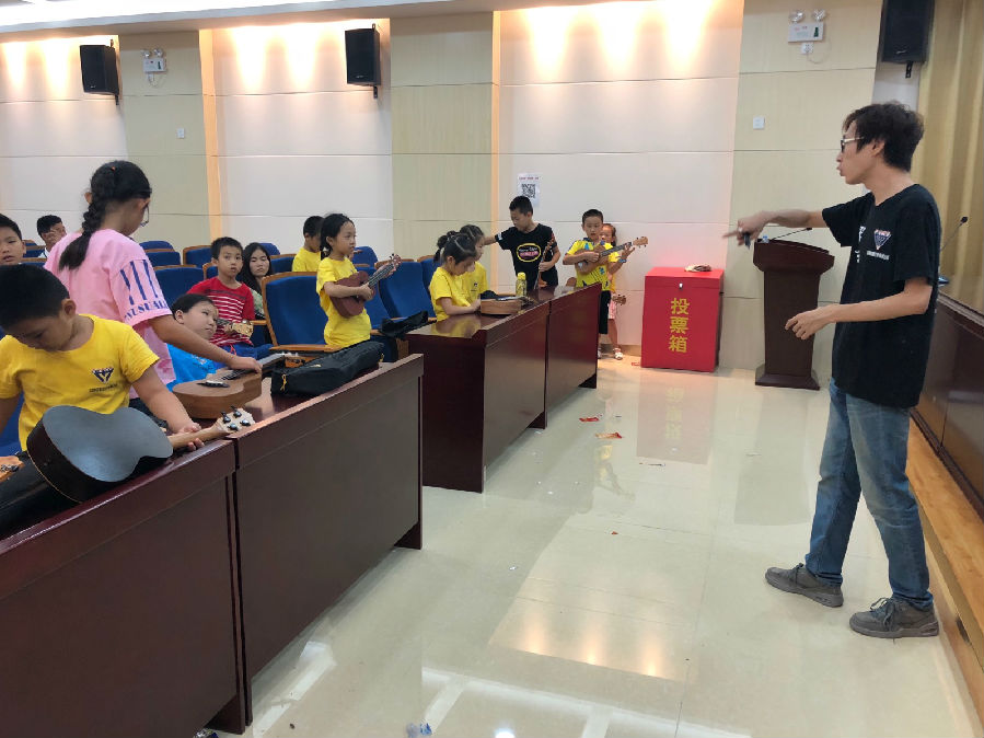 2018年7月28日下午3:00—4:30,海富社区党群服务中心在社区海富社区新时代讲习所(原海富社区党群服务中心一楼会议室)开展"音为有你,尤你弹唱"海富社区青少年尤克里里第八节课。本节课的主要是跟着老师一起来练习,从而能流畅连贯的进行和弦转换。