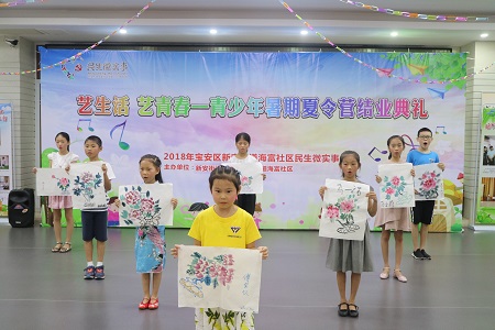 8月18日早上,新安街道海富社区“艺生活,艺青春”青少年暑期班结业典礼在社区党群服务中心二楼活动区举行,宝安区关工委主任温介平、街道关工委主任郑观福,街道妇联主席李俏,海富社区党委书记蔡剑峰,海富社区关工委班子成员出席活动。