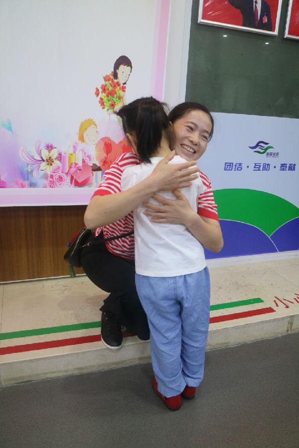 Diy贺卡完成制作后,小朋友们排成两队,齐齐向妈妈们展示自己的“作品”。随后小朋友们集体大声朗读诗歌——《赞美母亲》,在母亲节来临之际,大声妈妈们表达了自己对母亲的爱,并现场为妈妈们献上了自己用心制作的贺卡,“妈妈,您辛苦了!”“妈妈,我爱您!”“妈妈,母亲节快乐!”······一句句稚嫩而清脆的祝福语,让在场的妈妈们感动不已,情不自禁地上前抱住孩子。