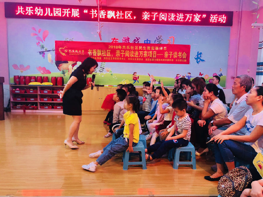 为了提高幼儿的阅读理解能力,激发幼儿的阅读兴趣,营造良好的书香氛围,增进父母与子女情感,10月25日下午,由共乐社区党委、共乐社区居委会及共乐社区党群服务中心举办的“书香飘社区,亲子阅读进万家”活动走进共乐幼儿园,活动吸引了40对亲子的参与。