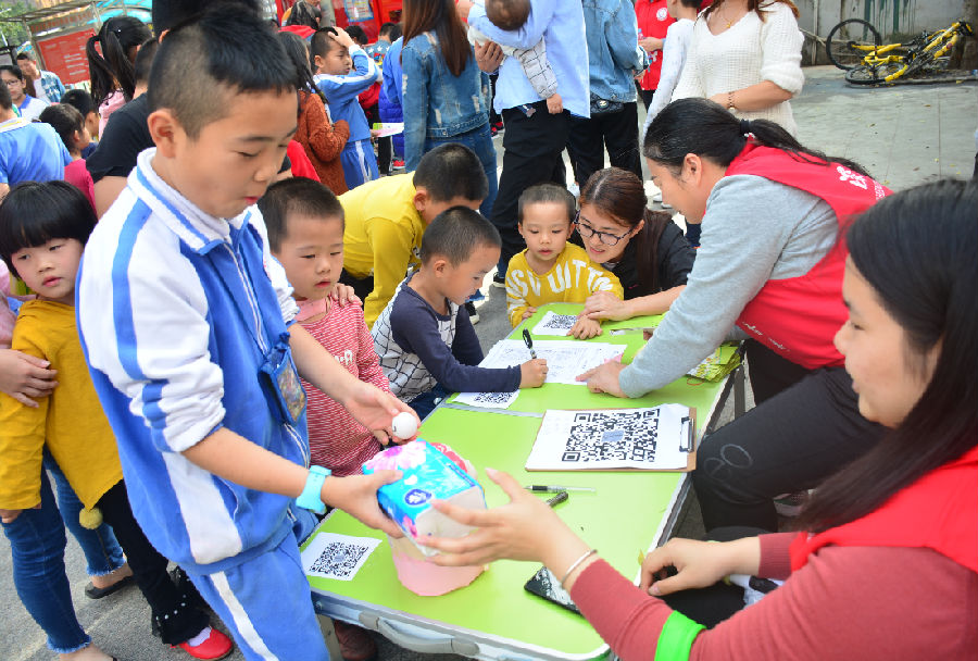 活动现场设有宣传摊位、游戏摊位和兑奖摊位。活动参加者在宣传摊位扫描并关注中心公众号二维码后领取游戏券参与现场活动。
