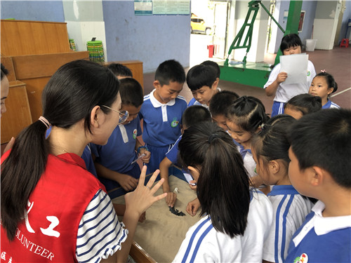 社区心理咨询师与学生们沙盘游戏互动