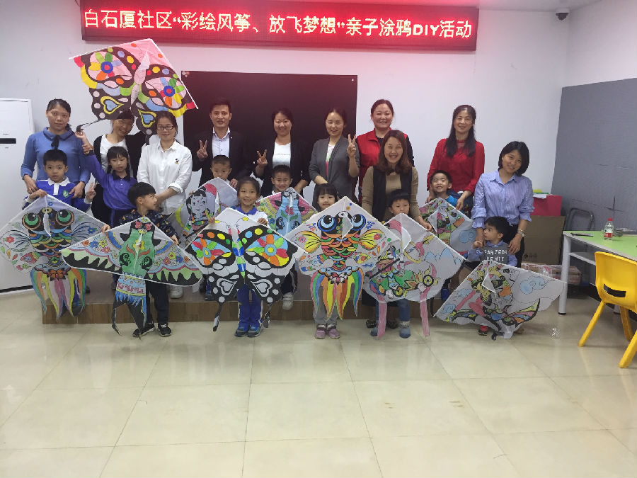 又到了风和日暖春意盎然的四月、放风筝的好时节。为了发扬我国民间传统文化,也为了丰富社区亲子们的业余生活。2019年4月12日下午,由白石厦社区社工组织举办的“彩绘风筝、放飞梦想”亲子涂鸦DIY活动,在白石厦社区居委会105活动室举行,本次活动旨在通过让亲子一起彩绘风筝来促进亲子之间的沟通交流,提升孩子们的动手能力和想象力,通过展示自己的作品来提升孩子们的自信心。