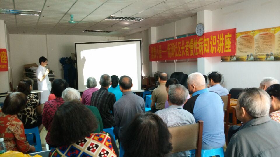 2015年4月16日下午15点,春暖花开的季节,为了提高社区老年人的健康知识水平,提升老年人的晚年生活质量,新澜社区服务中心联合大布巷社区健康中心,为社区老年人开展了公益创役项目之“健康小屋”系列活动——慢性病知识讲座。本次讲座的内容主要有高血压、糖尿病等老年人常见疾病及预防知识讲解并结合生活事例,讲谈了如何在日常生活养生之中养好身体等等,医护人员的每一字每一句让不少参与讲座的老人家都听得津津有味,李婆婆说:“我血压高压130,算高吗;陈伯伯接着又问:“医生,糖尿病是不是一定不可以吃糖啊?爷爷奶奶们一一的咨询着自己心中的疑问。