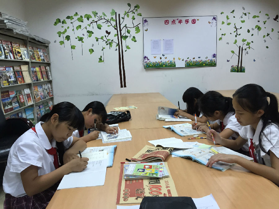 白石厦社区服务中心进驻以来,发现外来人口较多,这些在上小学的外来务工子女下午4点半放学,父母还没下班,学生放学后无人照看,出现了一段“管理真空”。如何让儿女更好更安全地度过这段“真空”时间,成为困扰很多农民工父母的难题。因此,社区服务中心在每周一至周五的下午4:30至6:30,义务为社区内1-6年级的学生辅导功课、亲子阅读、兴趣班、亲子课堂等服务。