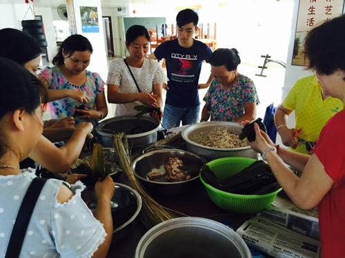 2、齐心协力包粽子