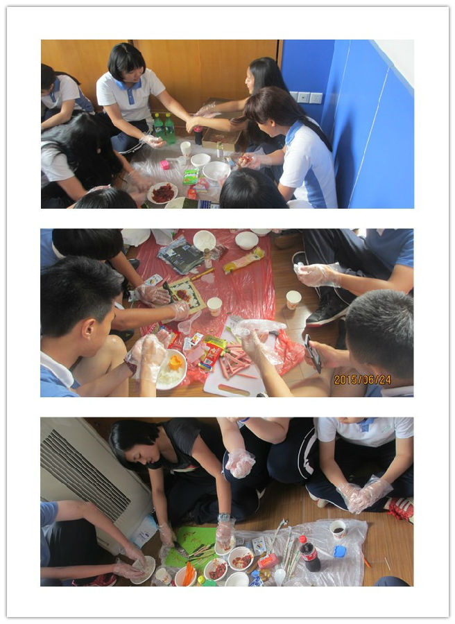 2015年6月24日下午4点20分,宝安职业技术学校西校区心理活动室异常热闹,这里聚集了20位心理健康协会成员,他们将亲手制作寿司来欢送由于实习即将离开心协的老成员。此次活动旨在增加成员之间的交流和互动,增加他们对心协的归属感,同时让离别不再伤感,而是快乐的有意义的回忆。