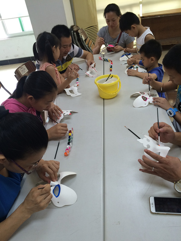 适逢暑假期间,家长与孩子们相处的时间多了许多,更需要多种多样的亲子游戏活动,福永中学社工在白石厦社区服务中心开展的亲子花样面具活动于2015年7月19日如期举行。