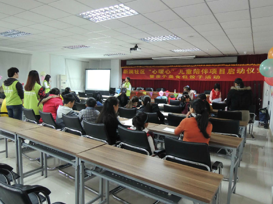 2015年118日,新澜社区服务中心在大布巷党群服务中心开展“心暖心”儿童陪伴项目开启仪式暨亲子美食包饺子活动,参加活动人员皆为报名“心暖心”儿童陪伴项目的家庭。
