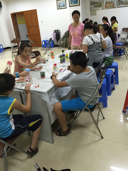 2015年8月30日下午两点,在白石厦社区居委会我们迎来了一群青少年,暴雨的天气并没有阻挡他们的理想和兴趣,下着雨,打着伞慢慢的往目的地走来,就是为了参加我们白石厦社区服务中心今天所举办的“小手掌,大精彩(一)”绘画活动。