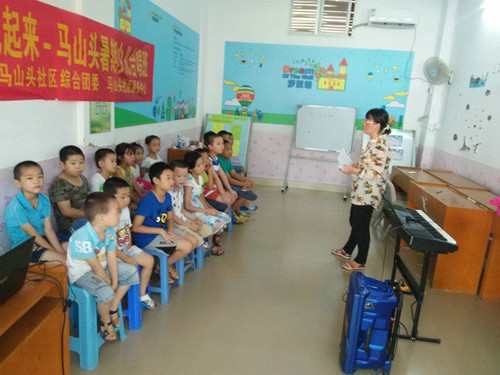 今年暑假,从老家来到深圳的“小候鸟”们在马山头社区服务中心过了一个快乐的暑假。从7月19号到9月6号,“小候鸟”们每周日来到社区服务中心四点半教室,整整齐齐地坐好,充满热情地等待由社工邀请而来的合唱老师——张老师。