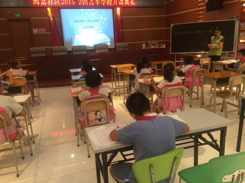 2015年9月15日下午16:30,海富社区工作站一楼会议室里充满了欢声笑语,原来是社区服务中心开设的“四点半学校”开课了,参加活动的小朋友在家长的陪同下,陆续来到四点半学校课堂。