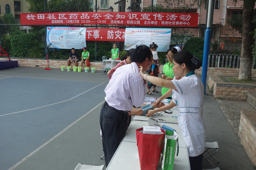 本次活动设置了药品安全知识有奖问答的游戏区、回收过期药品的咨询区、免费测量血压并解答居民关于安全用药问题的义诊区,活动现场吸引了不同年龄段的社区居民围观、咨询。社工通过与社区居民交流,发现有80%以上的参与者不懂得如何处理过期药品,大多数居民将过期药品直接丢进垃圾桶。对此,社工告知居民可将家庭过期失效药品送往社区设置的过期药品回收点(稔田社区服务中心),由药品监管部门统一销毁。