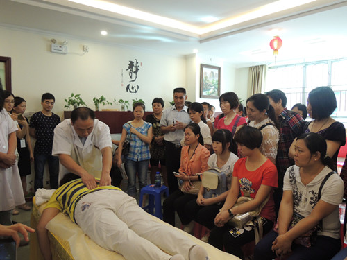 活动开始由院长为大家讲解了现代的各个疾病、再由理疗师实操为大家示范按摩、最后由义工提问自己想要了解的穴位。