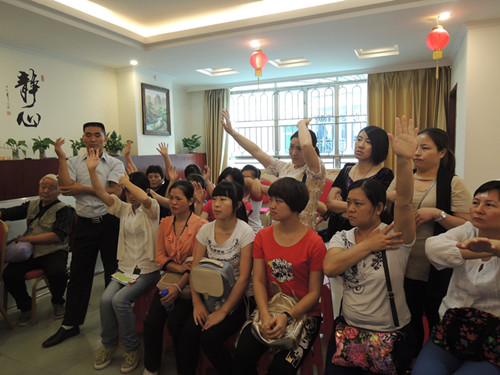整个活动有序进行,邹梅艳义工说:刚开始院长讲了一段很长的时间,原本是对这个讲座很失望的,后来终于有讲到了我们想要了解的穴位,最后还是有收获的。