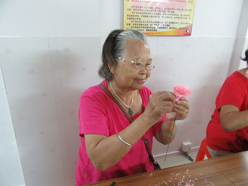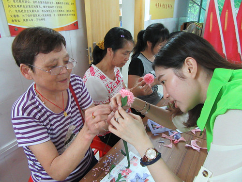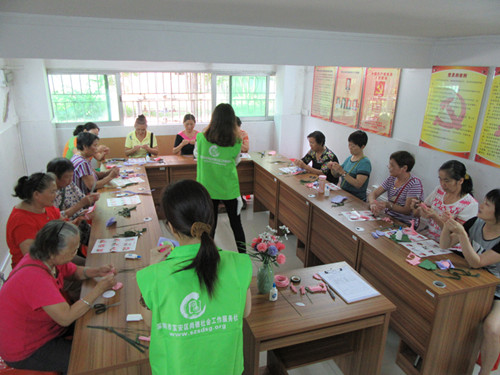 “我几十年都没有学过这个,这次学会了我好开心,下次还在来。”71岁的罗桂分阿姨拿着自己完成的康乃馨高兴的跟社工说道,除了罗桂分阿姨,现场的其他阿姨们也学会了制作手工康乃馨。