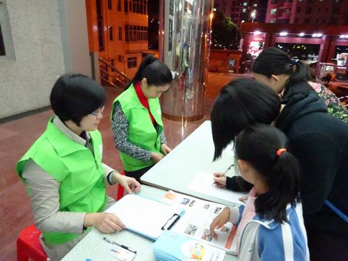 2、签到台前络绎不绝的居民