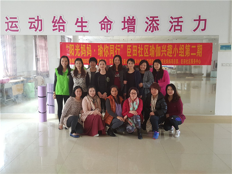 2015年12月1日下午14:30—16:00,在市妇联“阳光妈妈”项目部的支持下,西乡街道臣田社区服务中心在中心三楼多功能活动室开展“阳光妈妈·瑜你同行”臣田社区瑜伽兴趣小组的最后一节活动。