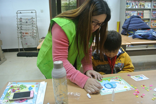 指导小朋友做纽扣画