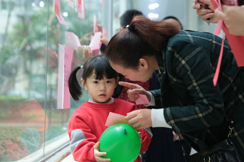 游园活动中,共分了游戏互动区、兑奖区和问卷调查区三个活动区位。在社工和义工进行布置好游园活动后,浓郁的庆元宵气氛吸引了刚放学的学生和家长,一下子园内便挤满了人。游戏互动区域深受社区居民的欢迎,尤其是喜猜灯谜,小孩、家长和老人齐齐参与,大家费劲浑身解数,进行头脑风暴,一一通关,获得领奖券。夹玻璃珠的游戏中,也有不少小孩和家长的身影,大人小孩玩得不亦乐乎,临近活动结束时,小孩们依依不舍,都表示说不要领奖券,想要继续玩游戏。