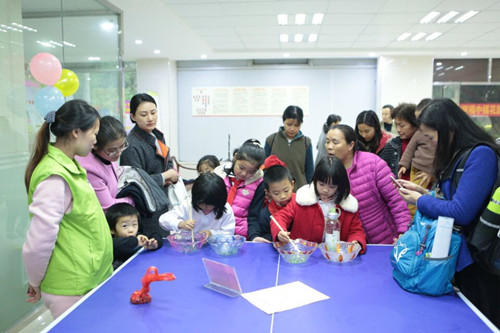 游园活动中,共分了游戏互动区、兑奖区和问卷调查区三个活动区位。在社工和义工进行布置好游园活动后,浓郁的庆元宵气氛吸引了刚放学的学生和家长,一下子园内便挤满了人。游戏互动区域深受社区居民的欢迎,尤其是喜猜灯谜,小孩、家长和老人齐齐参与,大家费劲浑身解数,进行头脑风暴,一一通关,获得领奖券。夹玻璃珠的游戏中,便有不少小孩和家长的身影,大人小孩玩得不亦乐乎,临近活动结束时,小孩们依依不舍,都表示说不要领奖券,想要继续玩游戏。