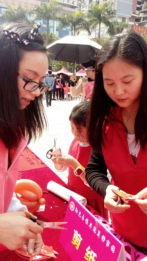 在此次活动中,中心以现场手把手,一对一教学,传授中华传统手工艺术---“剪纸”为切入点,为社区妇女提供一个既能提升自我,又可休闲娱乐的互动平台。教授剪纸的两位老师是福中福社区义工队伍中的家庭主妇,心灵手巧,喜欢剪纸带来的乐趣,她们希望通过剪纸活动告诉更多的家庭主妇,在日常的生活中不仅仅只能是洗衣做饭,接送小孩上学,还可以参加社区活动增加妇女儿童权益保障等法律知识,拓宽交际圈,多学习新技能也是对自己负责,见识面扩宽,与小孩相处更融洽、更跟的上时代。