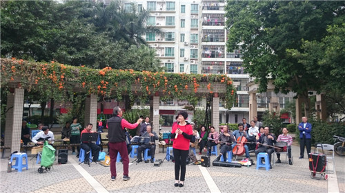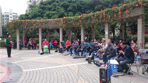 昨日福中福社区服务中心在小区花园开展“用歌祝福社区妇女”歌唱活动。