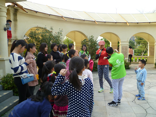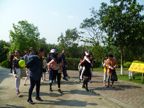 不一会儿,人们就陆陆续续到齐了,社工给大家点好名后大家就出发了。愉快的出游怎么少得了游戏?所以一到山脚,社工就为大家亮出了第一个游戏——“爱的背背”。在社工一声令下,妈妈们都陆陆续续背起自己娃。有的家庭娃娃已经长大,妈妈直言很难背的动了;有的家庭娃娃8岁,但孩子坦言妈妈上次背他已经是三年前了;有的娃娃高兴地跟社工说,妈妈的背很温暖……