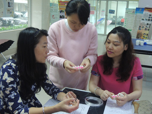 3.社工教组员串花瓶的步骤
