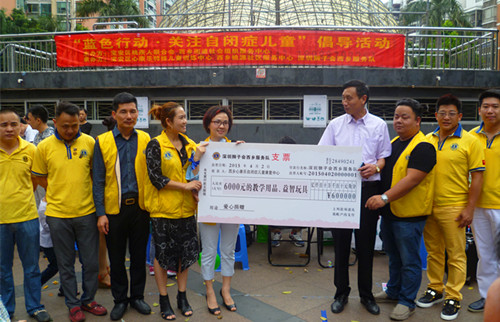 活动期间,深圳狮子会西乡服务队也为我们的“星星孩子”带来了丰富的礼物,并捐赠6000元的教学用品与益智玩具给西乡心康乐儿童训练中心,并由衷的希望,通过我们的共同努力,能够协助孩子们健康、快乐的成长。